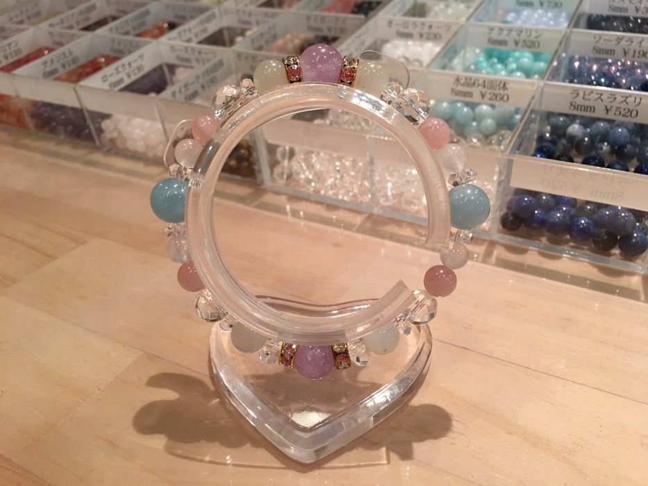 ご自身で好きな天然石や金具パーツを選んでいただくことで、他にはない美しいブレスレットを制作していただけます![]()
