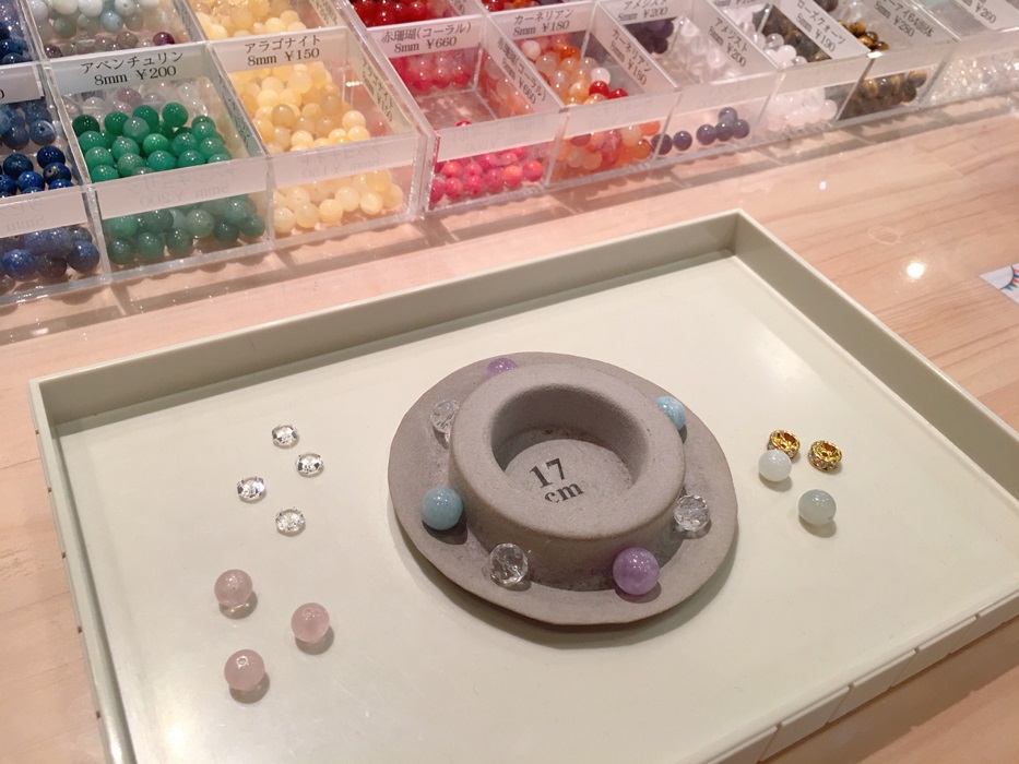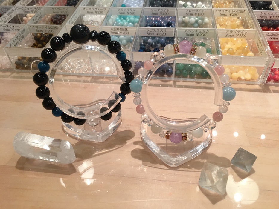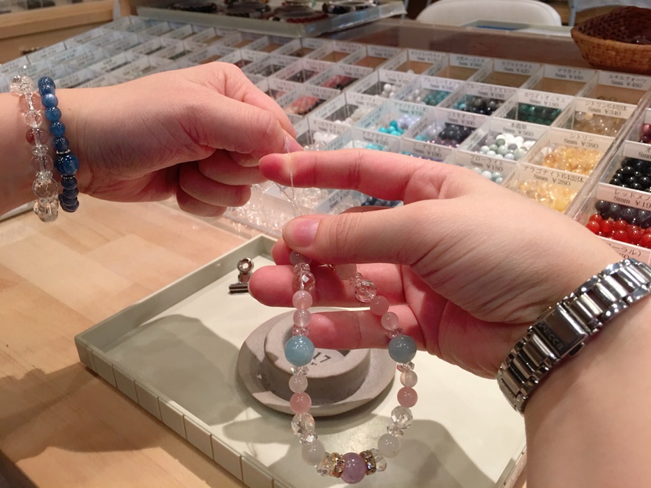 本日は「天然石アクセサリーってどういったものが作れるの?」といった質問をよく受けるので、一番人気のブレスレット作りの様子をご紹介します!
