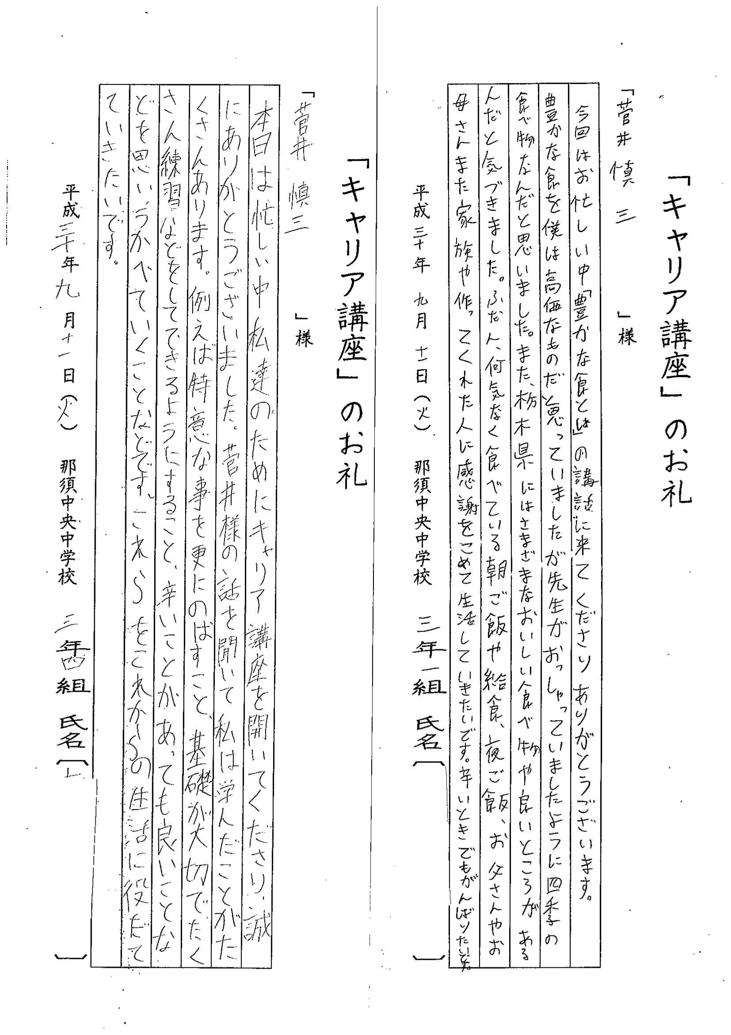 先月になりますが地元中学校3年生に向けて