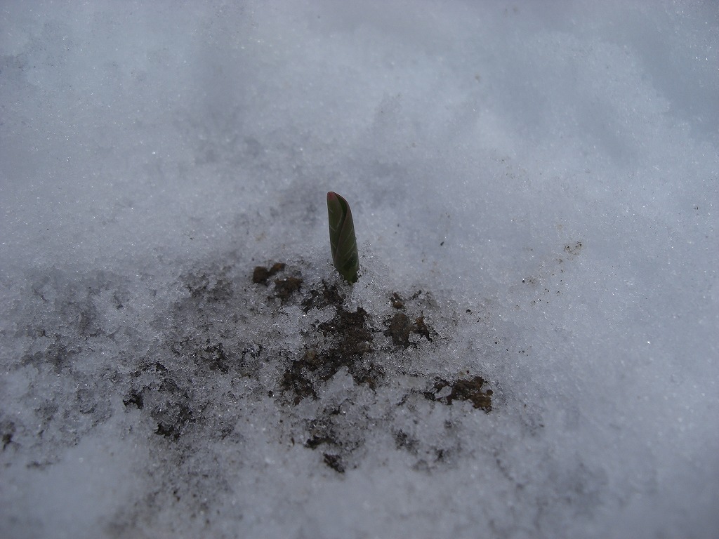 雪の中からひょっこり芽がでてきているんでしょうね!