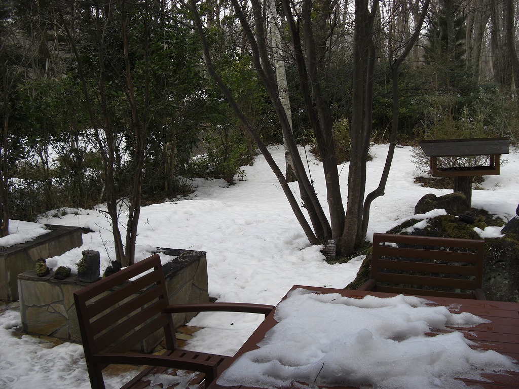 メンバーズサロンの庭に、先日の雪がまだ残っています